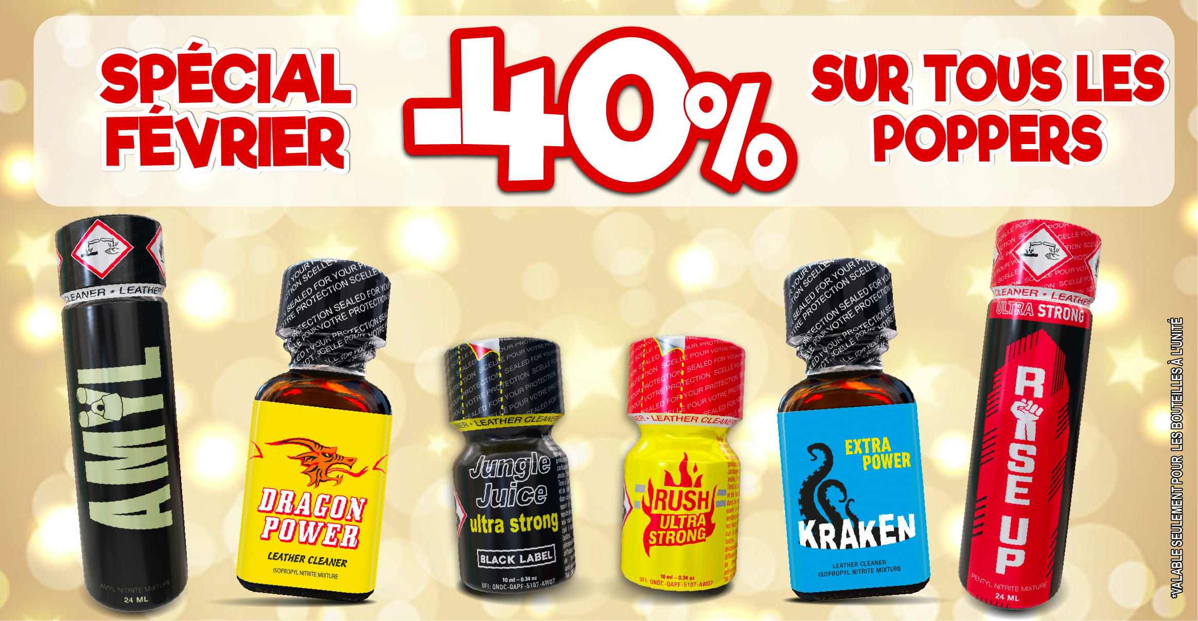 N’oubliez pas, tous nos poppers sont 100% légaux en France, à l’exception du nitrite de butyle. Votre sécurité est notre priorité !